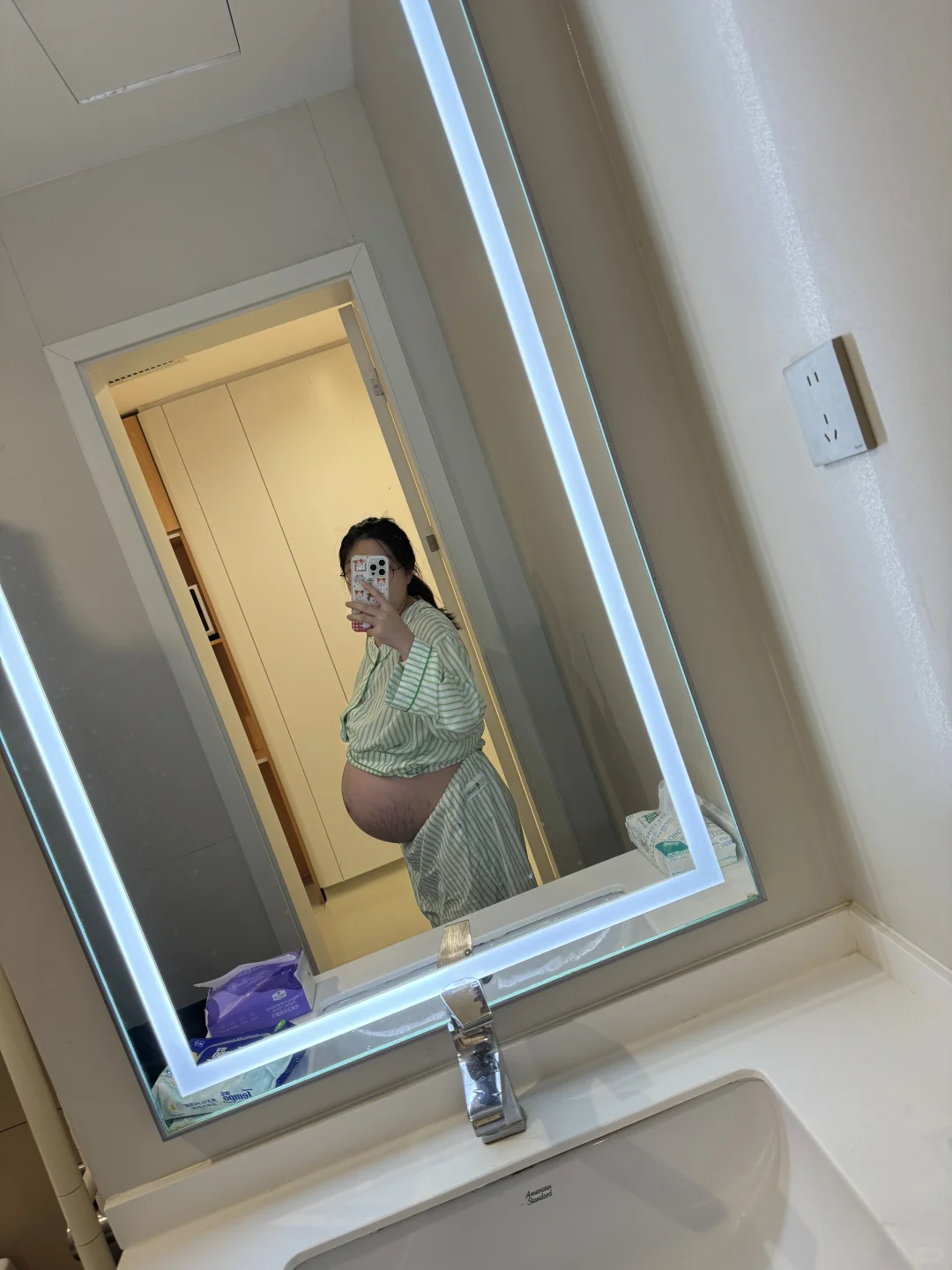 开始溜达了😂尴尬的是裤子也没穿,都忘了自己是在坐月子(ps:中妇的房间是真的热!)下地我就舍不得上床了(一起一下的过程比在地上走还痛苦)溜达了几圈开始排气了!(终于!)但是我肚子里好大一堆气体还没排出来,只排了一小点点,又各种溜达。